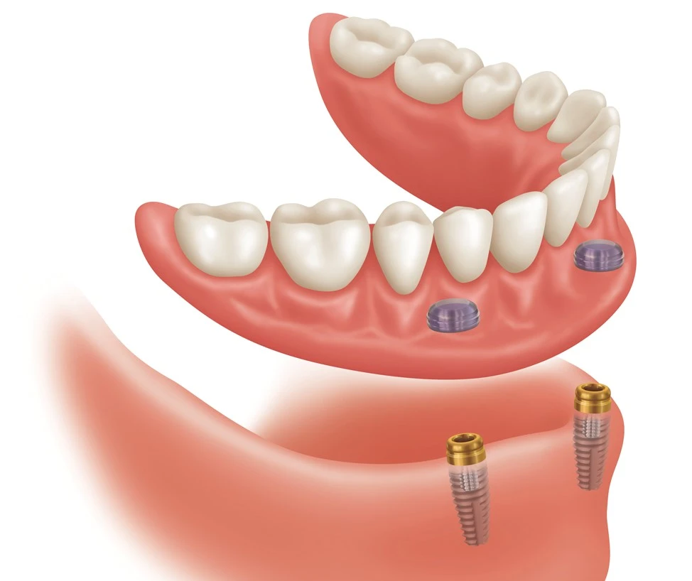 Para pacientes que usan dentadura completa inferior o superior. Unos pocos implantes estratégicos sirven de anclaje, proporcionando una retención y estabilidad excepcionales que eliminan los movimientos, las rozaduras y la inseguridad.